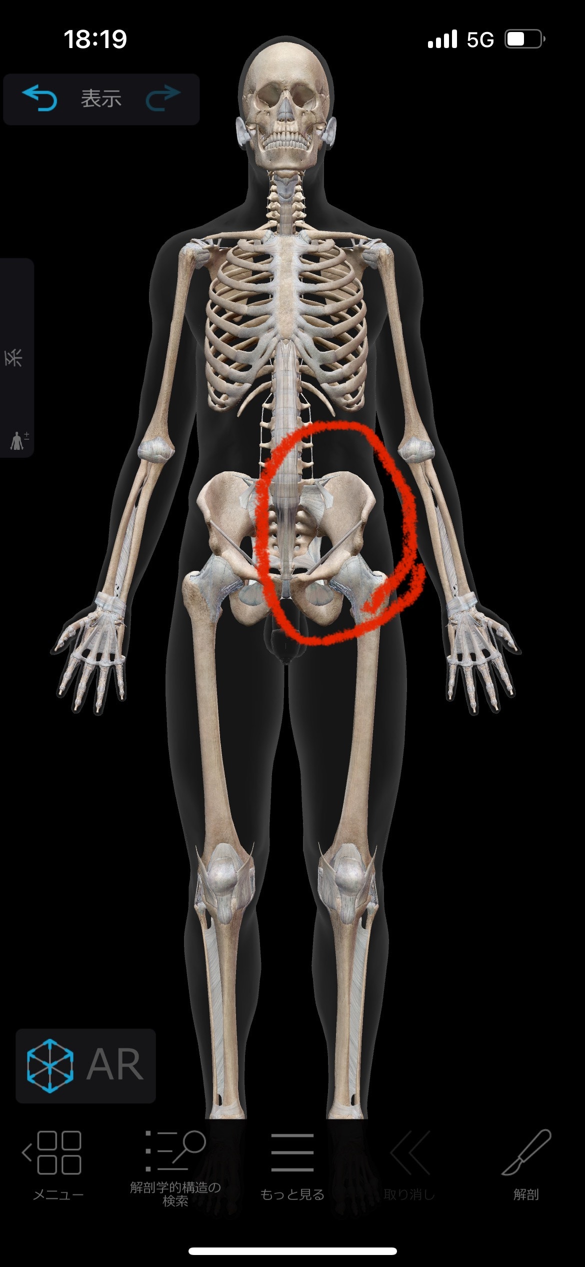 “骨盤”と書いたが、これは一般的な名称で、解剖学用語では“寛骨(かんこつ)"と呼ぶ。